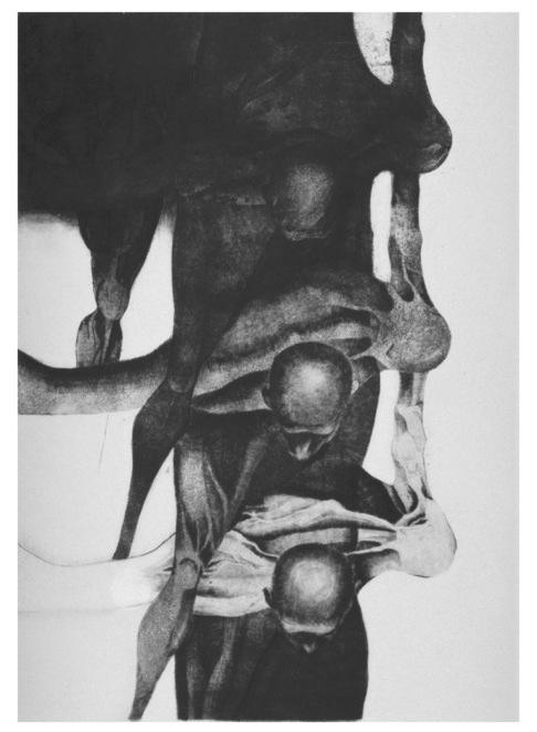 "Gradacja" 1977 rok, akwaforta, mezzotinta, format 65 x 44 cm. nakład 50 szt.