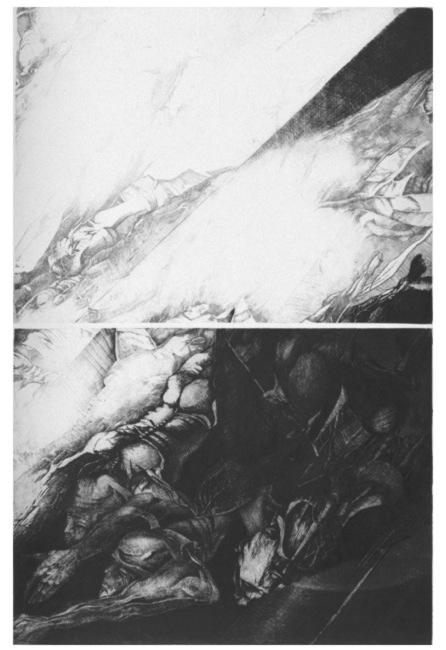 "Ikar" 1984 rok, akwaforta, mezzotinta, format 60 x 39 cm. nakład 50 szt. Grand Prix - Grafika Roku Polski Północnej 1984