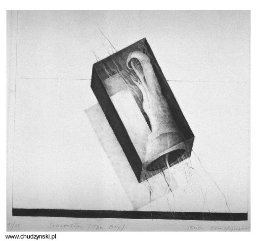 "Szkatółka" 1986 rok, sucha igła, format 34 x 40 cm. nakład 25 szt. Wyróżnienie na VII Biennale Sztuki Gdańskiej II nagroda - Ogólnopolski Konkurs na Grafikę Roku 1986