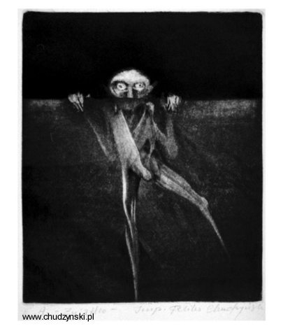 "Żyjątko" rok 1984, mezzotinta, format 19 x 16 cm, nakład 25 szt.