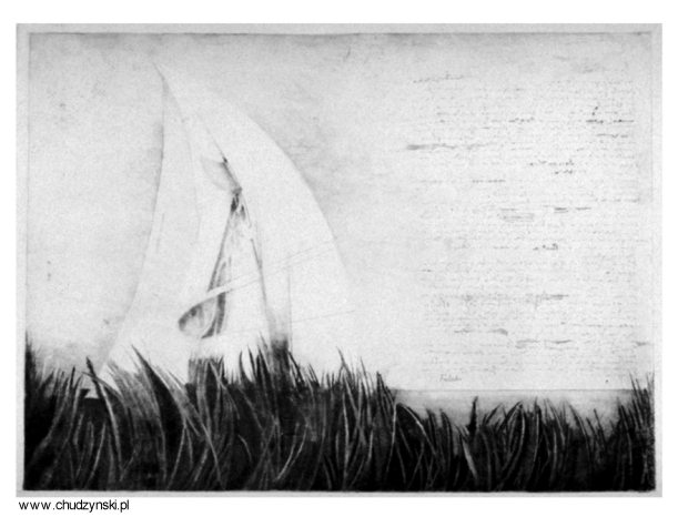 "Powrót na Ruisallo" 1987 rok, sucha igła, format 32 x 44 cm. nakład 25 szt.